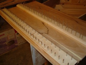 The key frame: The keys pivot on the “balance rail” in the middle, and the pins on the “front rail” go into holes in the bottom of the keys. The key frame: The keys pivot on the “balance rail” in the middle, and the pins on the “front rail” go into holes in the bottom of the keys.